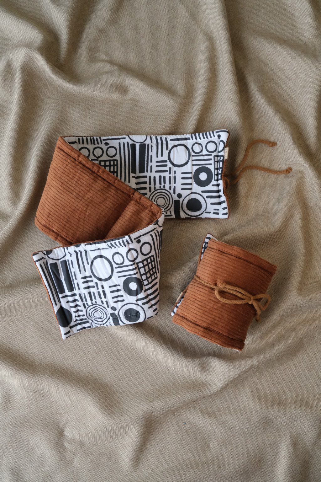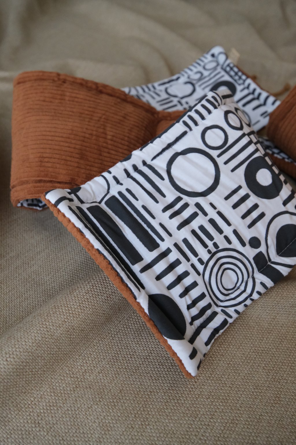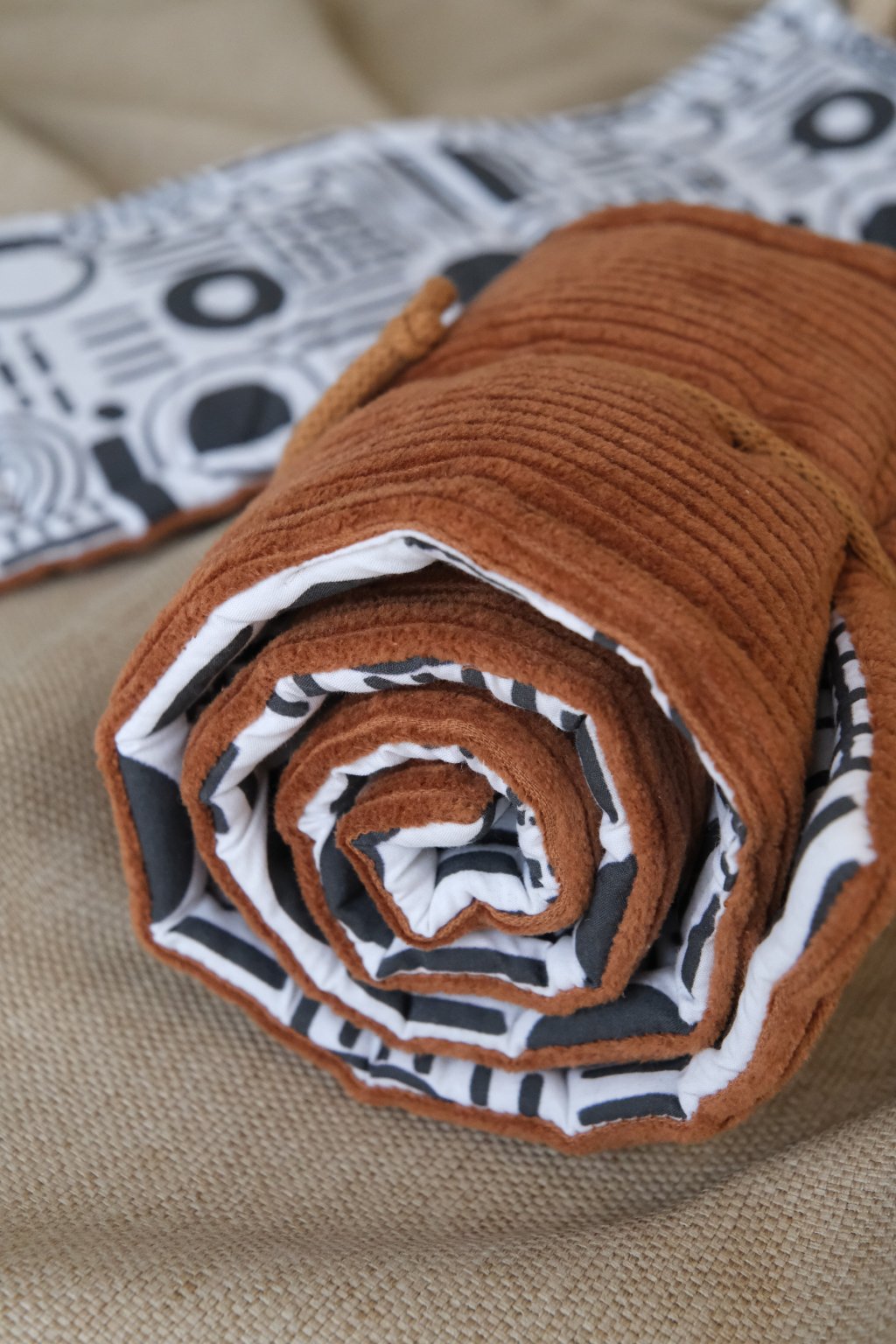 Na opačné straně je použit měkčený manšestr, který je skvělý pro rozvoj hmatu – je příjemný na dotek a jemně „žebrovaný“, což je pro miminko nová struktura, která ho zaujme.