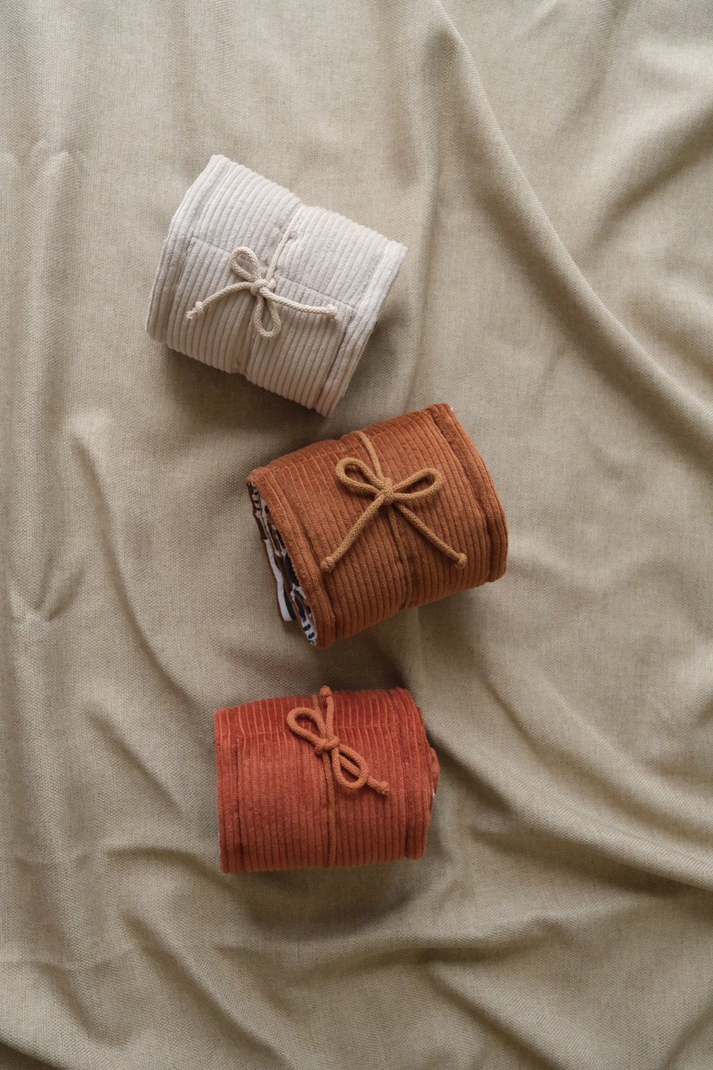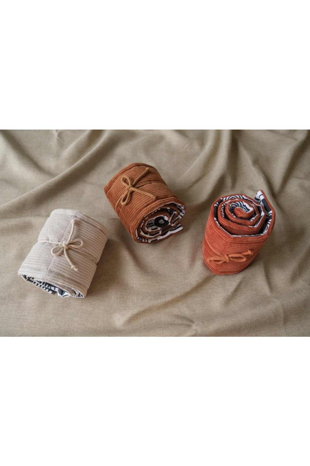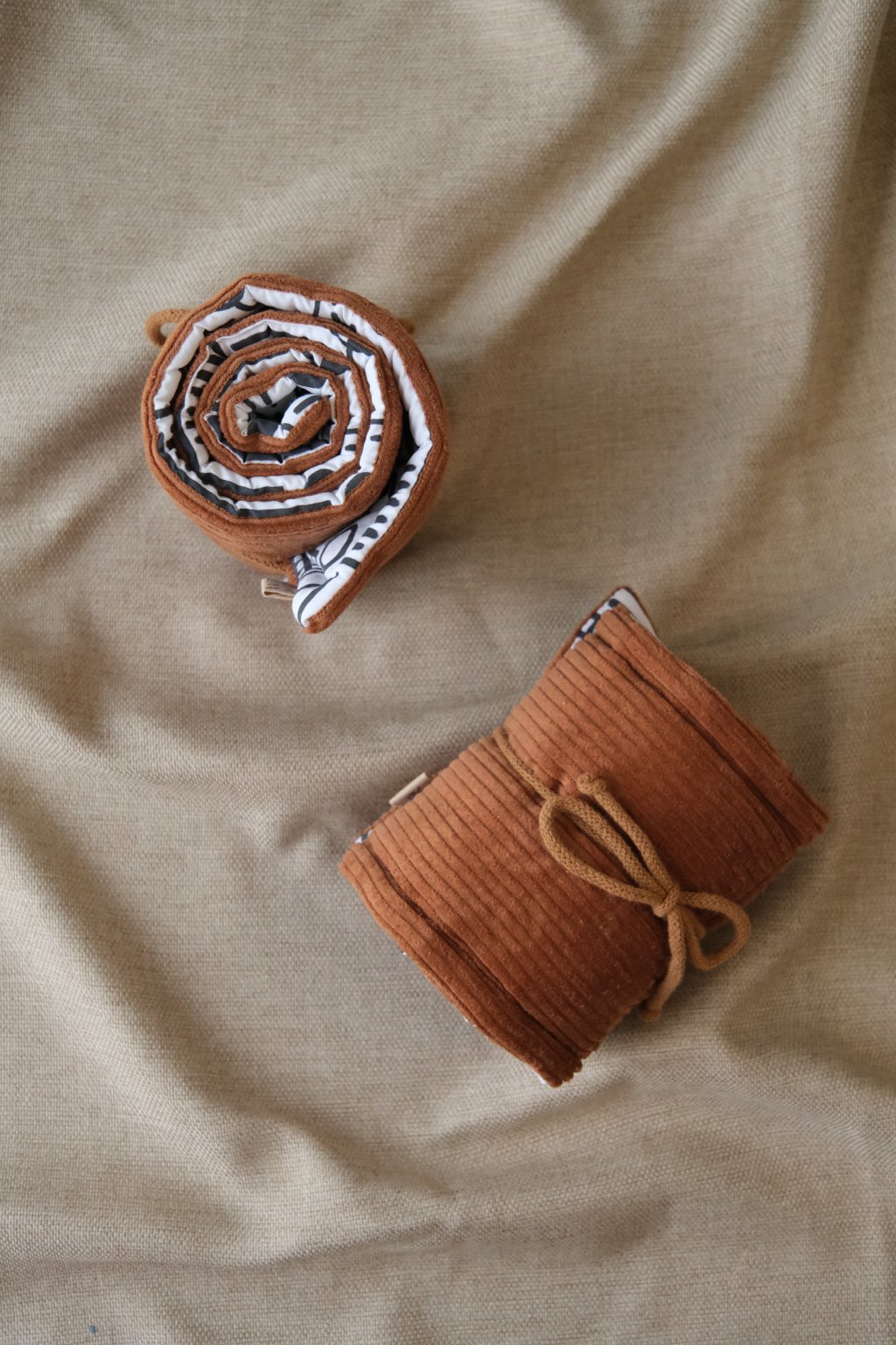 Na opačné straně je použit měkčený manšestr, který je skvělý pro rozvoj hmatu – je příjemný na dotek a jemně „žebrovaný“, což je pro miminko nová struktura, která ho zaujme.