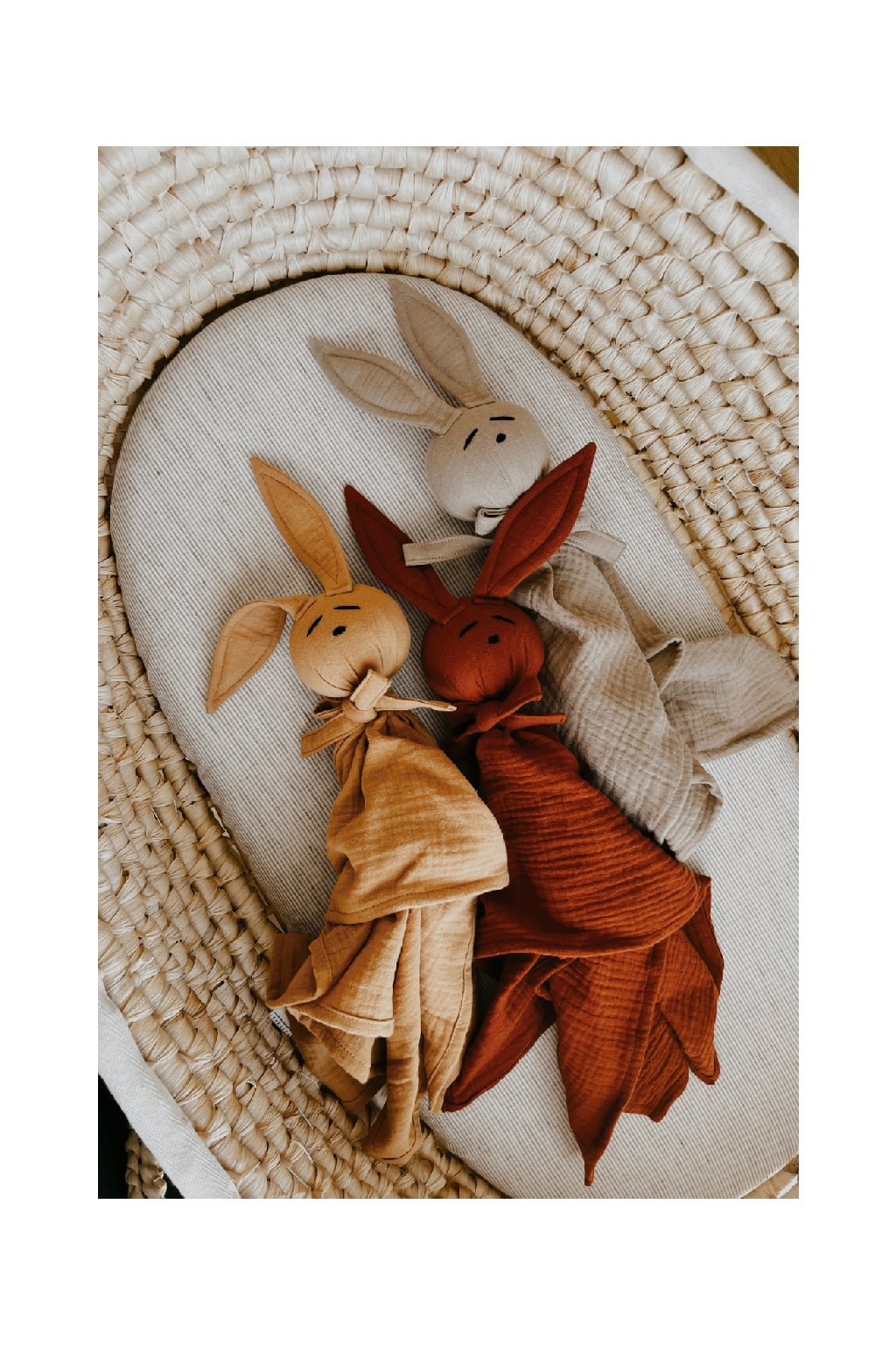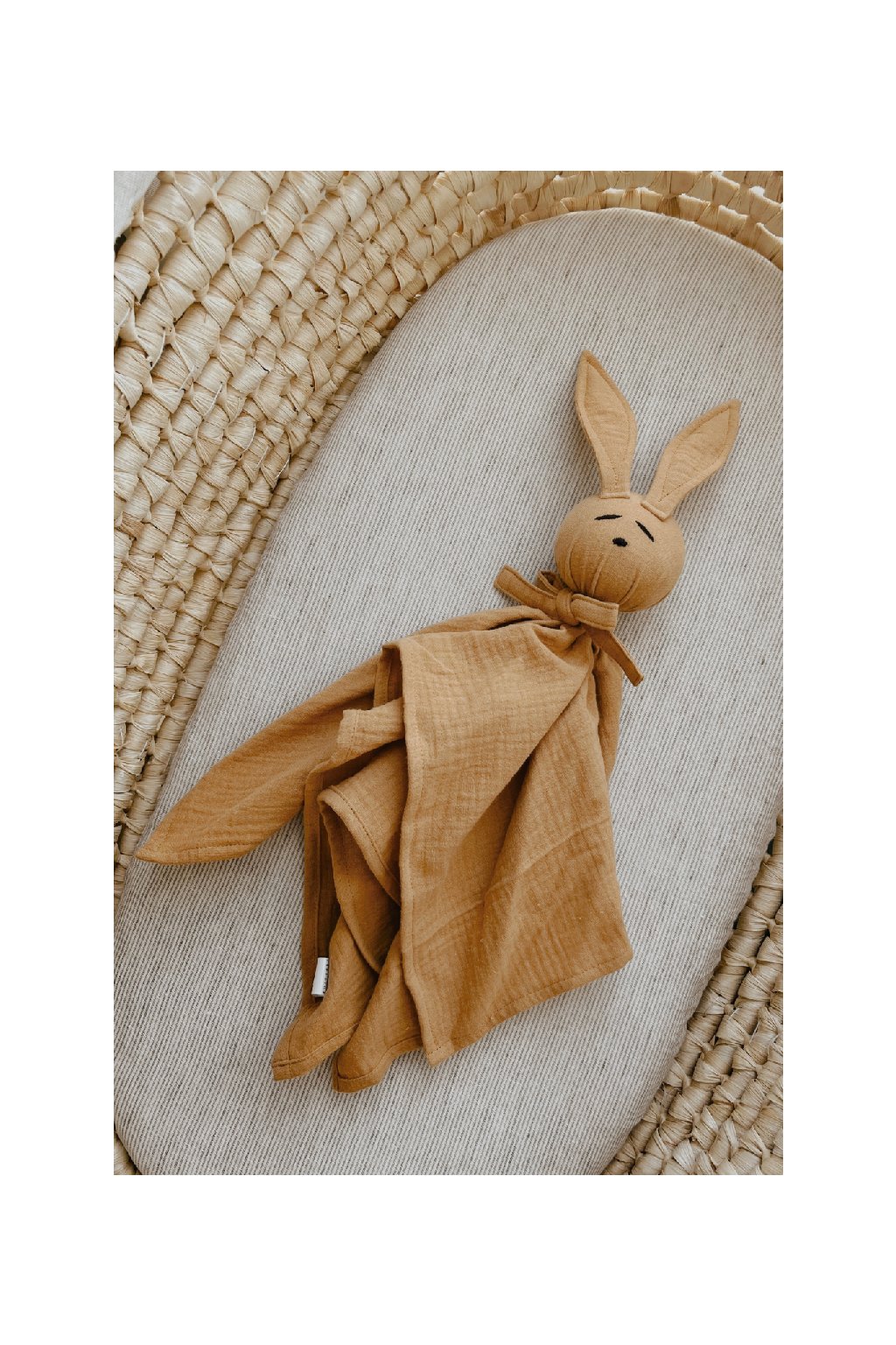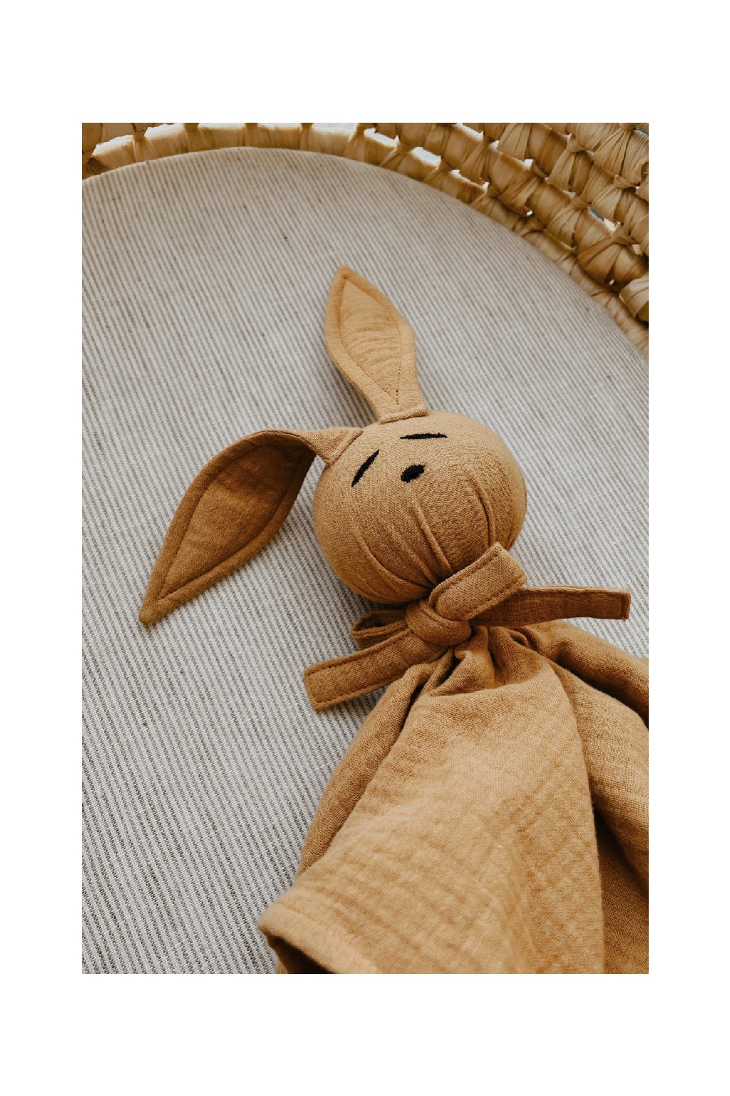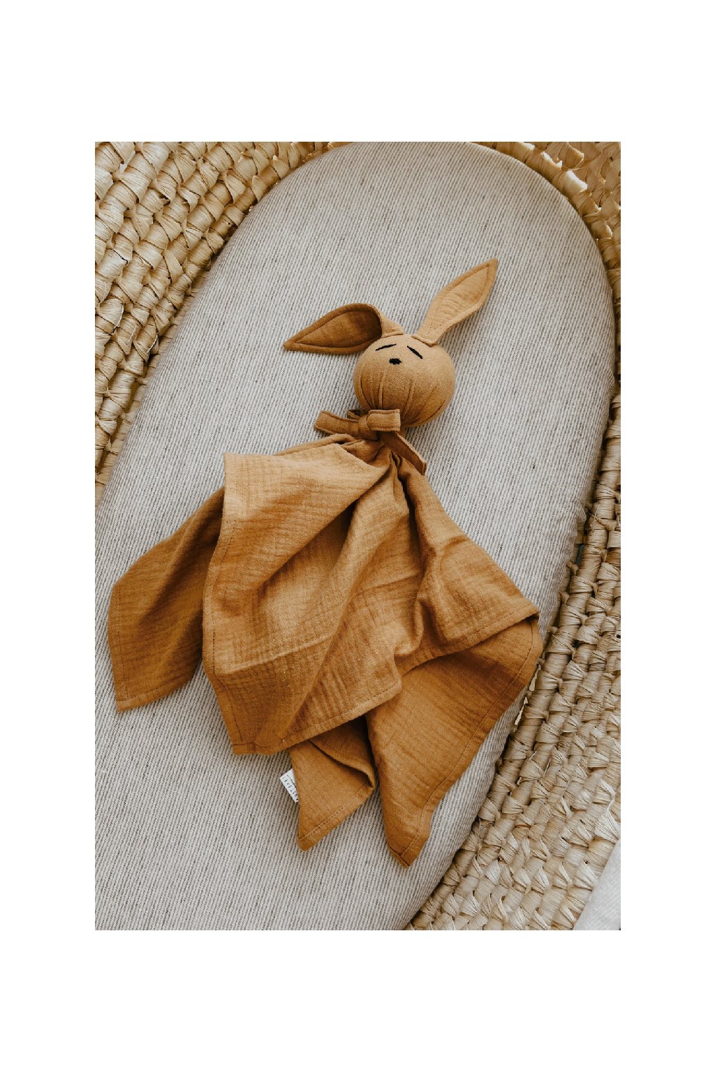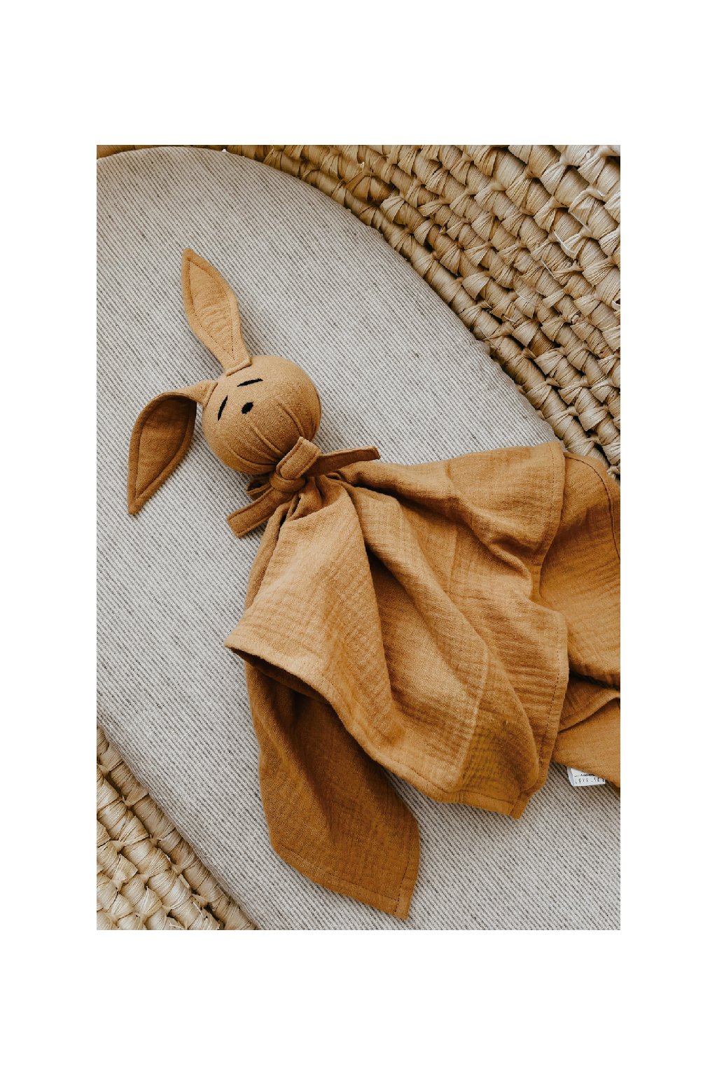 Jemná muchlací hračka z přírodního bavlněného mušelínu, kterou si miminka zamilují už od prvního dotyku.