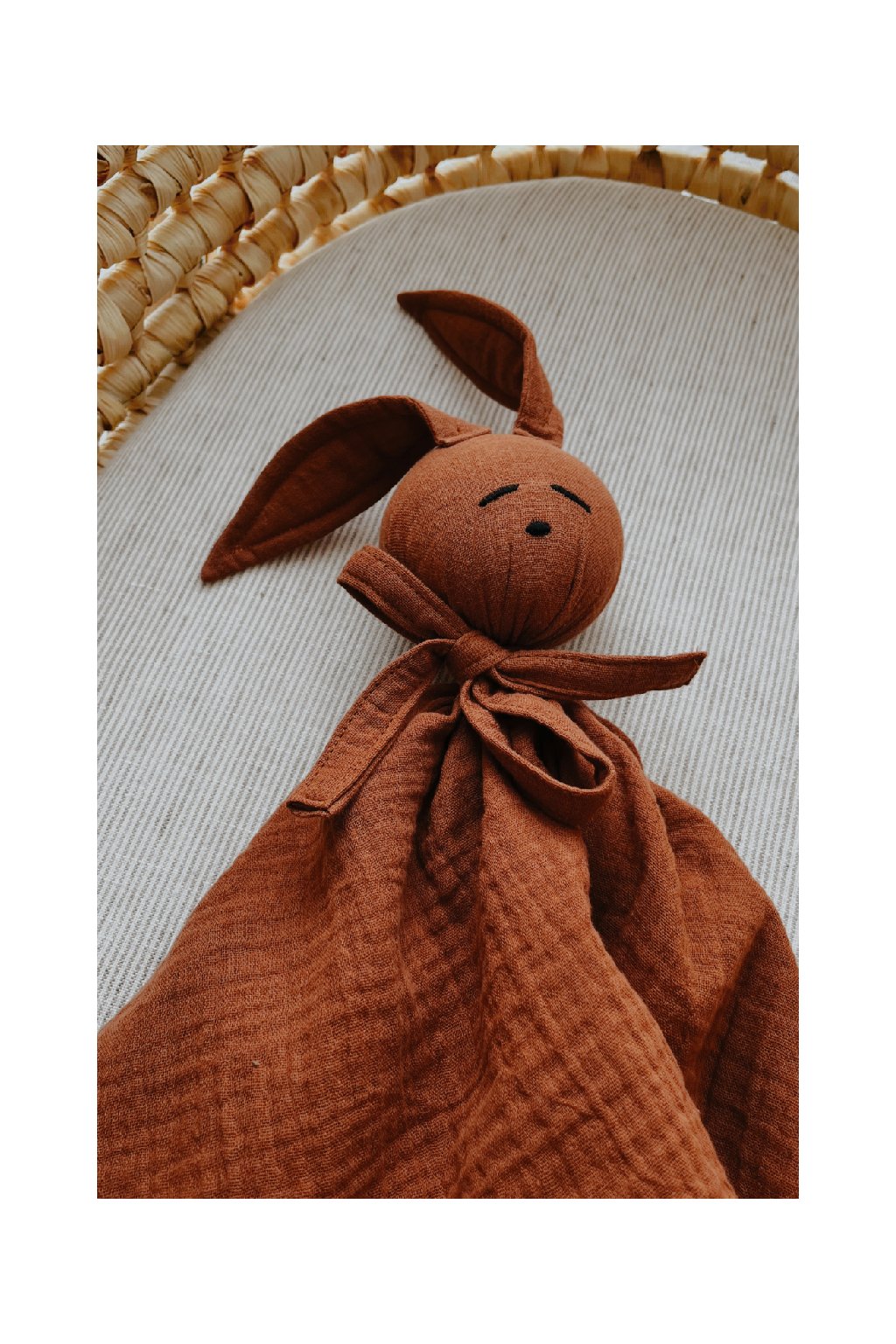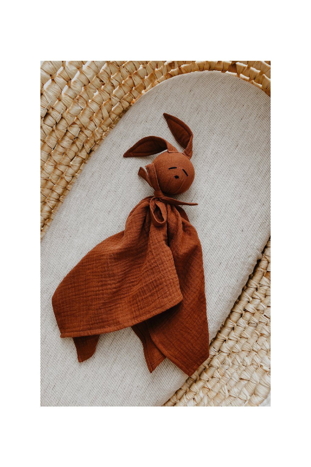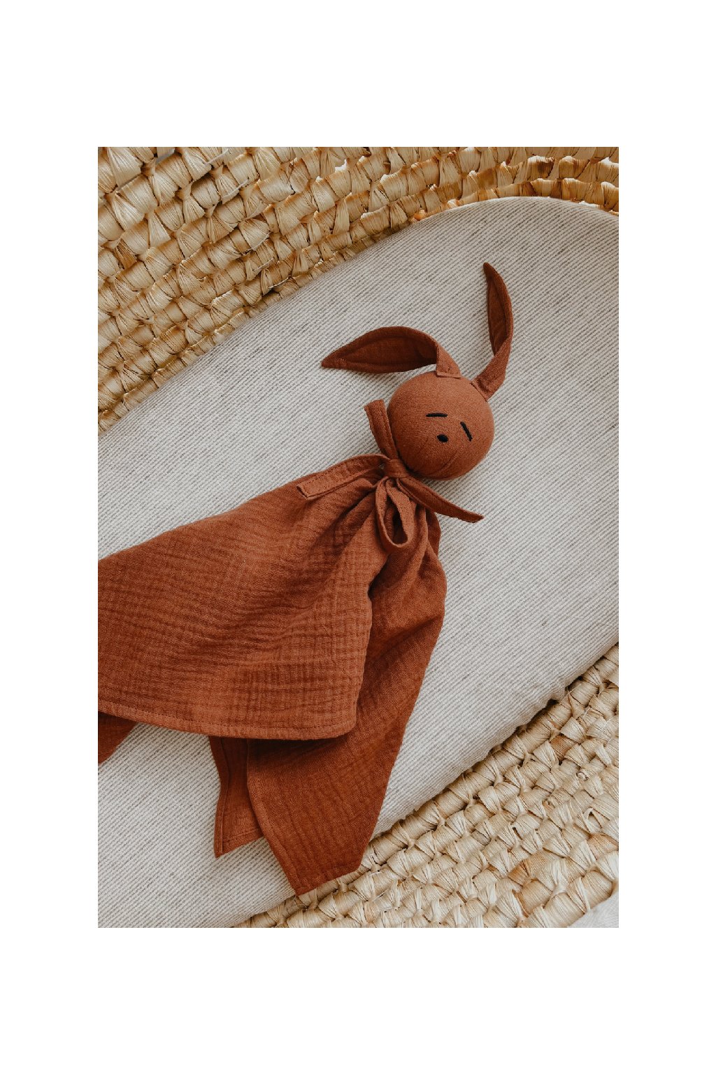 Jemná mazlící hračka z přírodního bavlněného mušelínu, kterou si miminka zamilují už od prvního doteku.