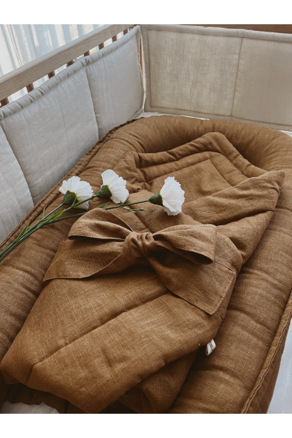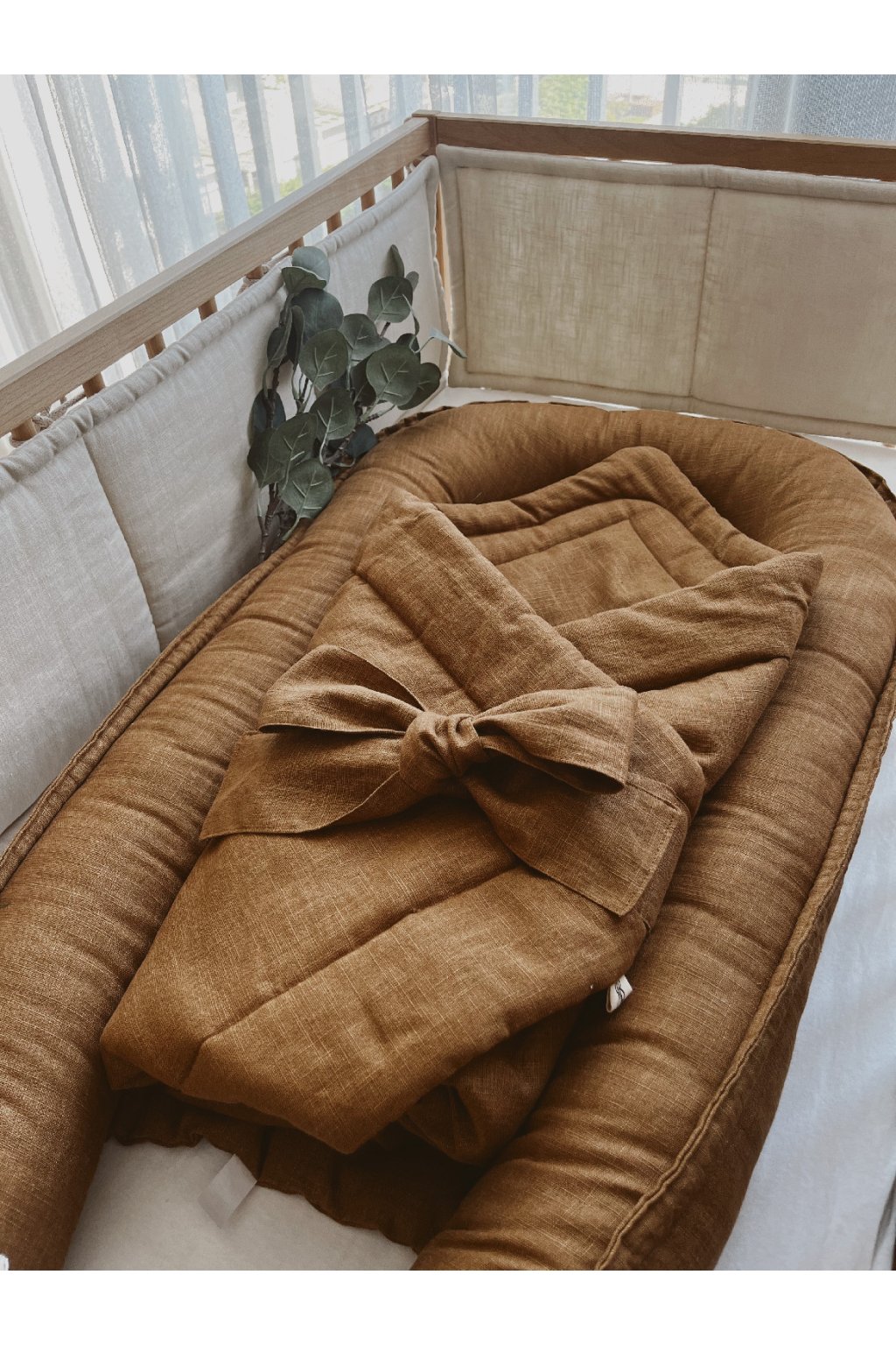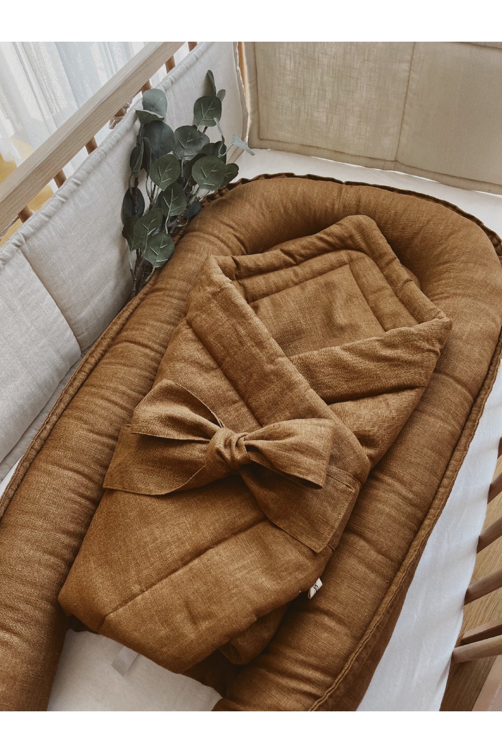 Připravili jsme speciální sadu, která spojuje dva z našich nejoblíbenějších produktů – lněné hnízdo pro miminko a lněnou zavinovačku s jednou mašlí – sladěné do jednotného designu podle vašeho výběru.