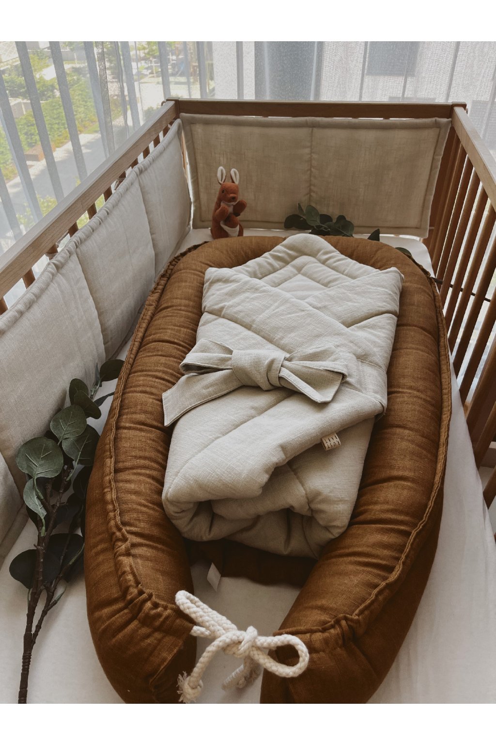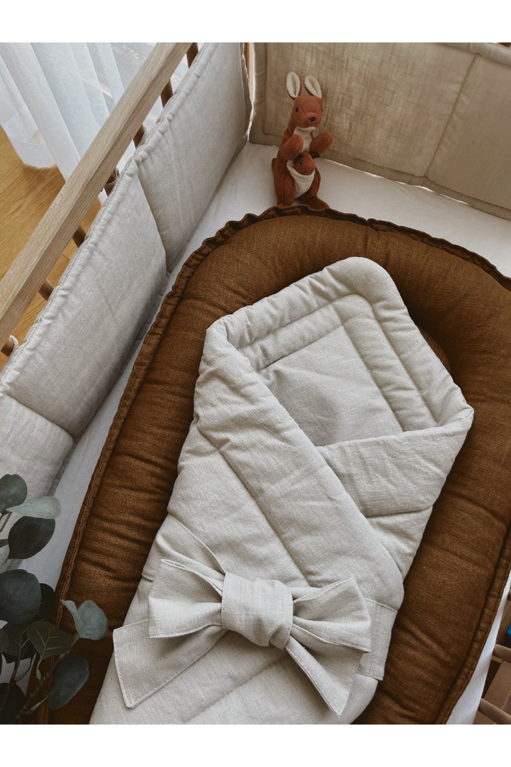 Připravili jsme speciální sadu, která spojuje dva z našich nejoblíbenějších produktů – lněné hnízdo pro miminko a lněnou zavinovačku s jednou mašlí – sladěné do jednotného designu podle vašeho výběru.