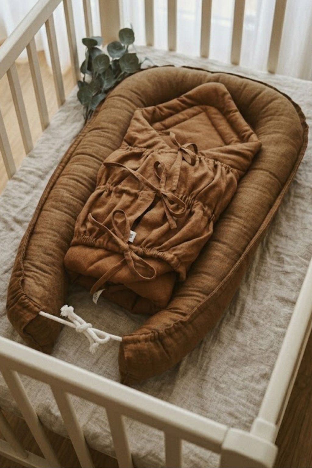 Připravili jsme speciální sadu, která spojuje dva z našich nejoblíbenějších produktů – lněné hnízdo pro miminko a lněnou zavinovačku se třemi mašlemi – sladěné do jednotného designu podle vašeho výběru.