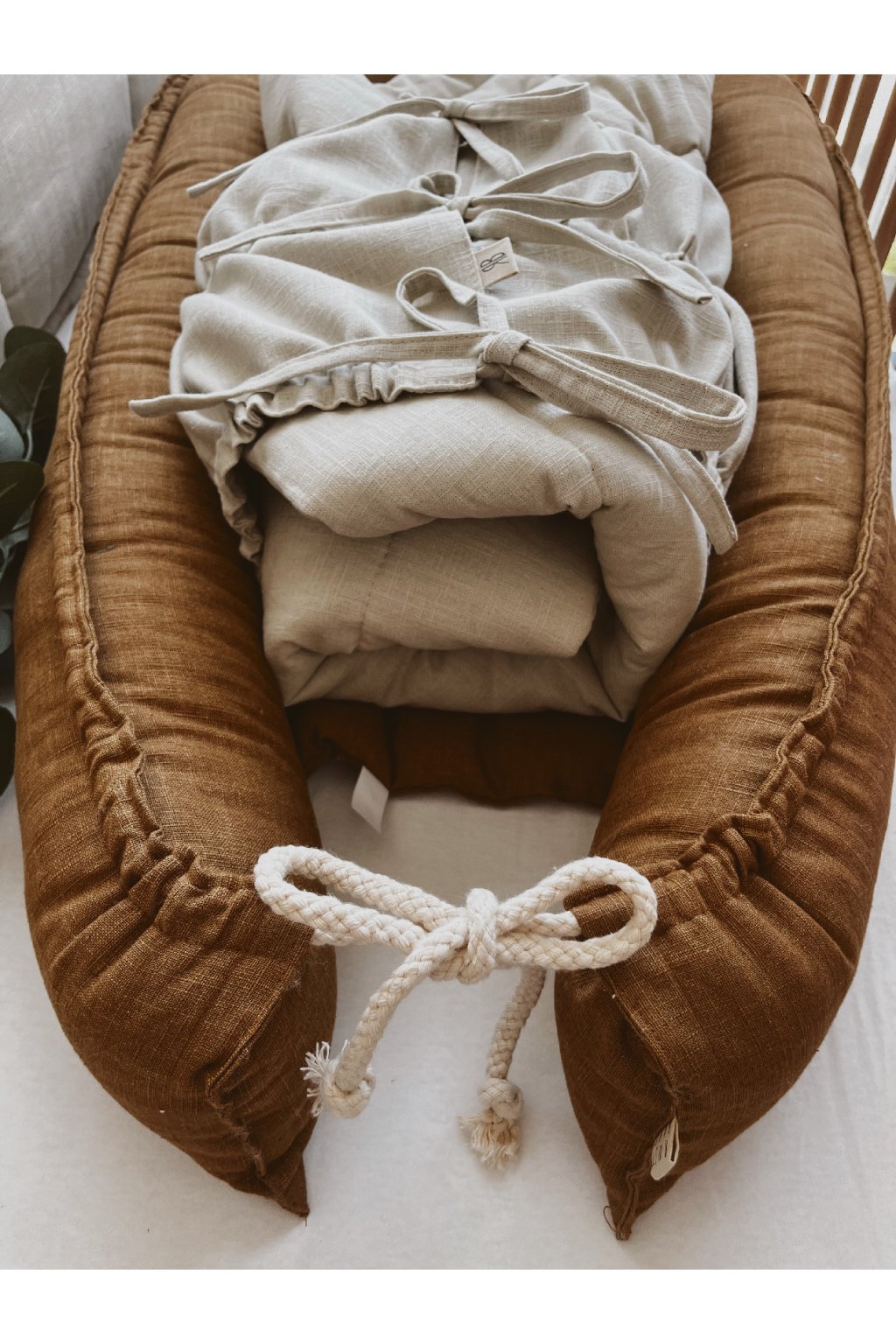 Lněné hnízdo pro miminko