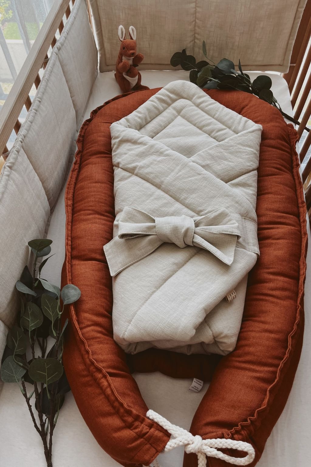 Bundle Deal | 1-Bow Linen Swaddle NATURAL + Baby Nest RUST