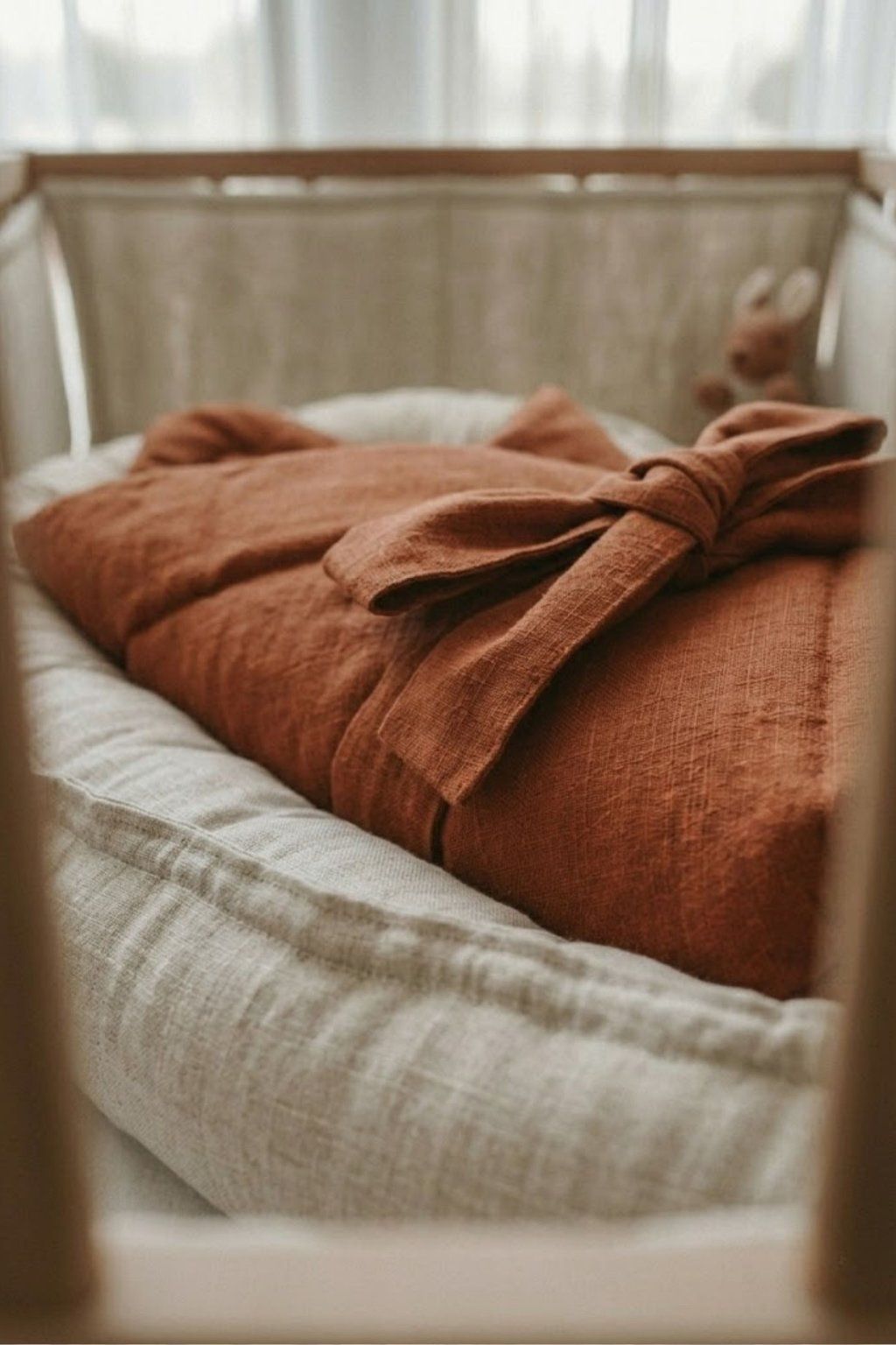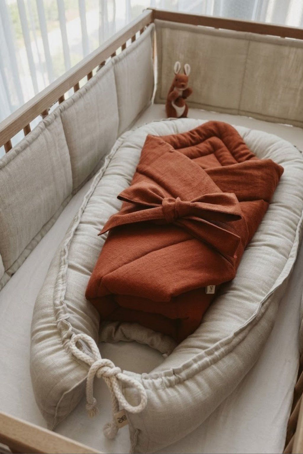 Bundle Deal | 1-Bow Linen Swaddle RUST + Baby Nest NATURAL