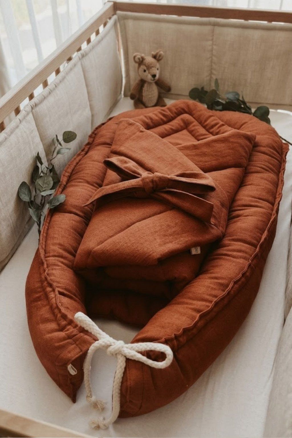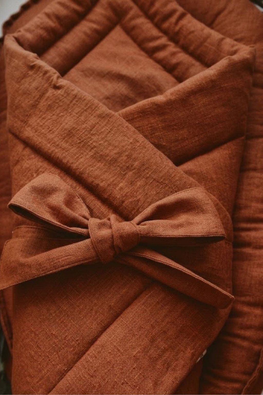 Bundle Deal | 1-Bow Linen Swaddle RUST + Baby Nest RUST