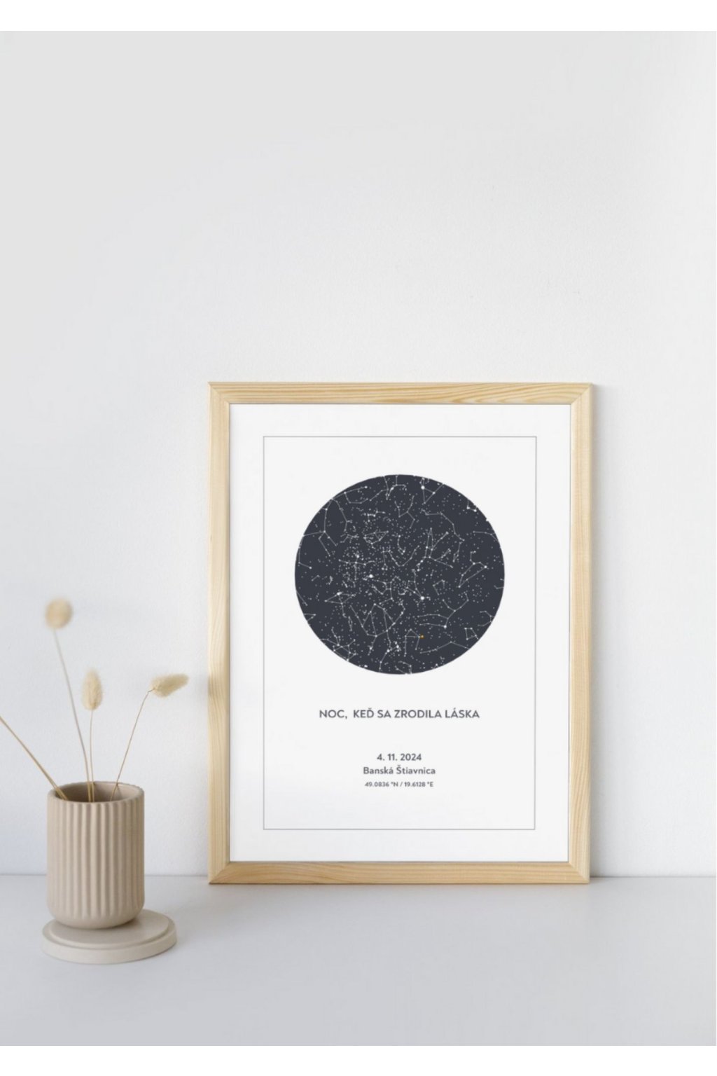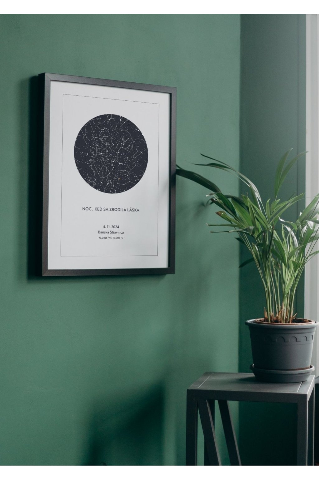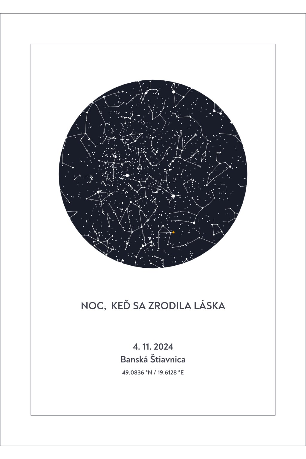 - digitálny plagát obsahuje hviezdnu mapu konkrétneho dňa nad konkrétnym miestom, ktoré si vyberiete + váš ľubovoľný citát či nápis