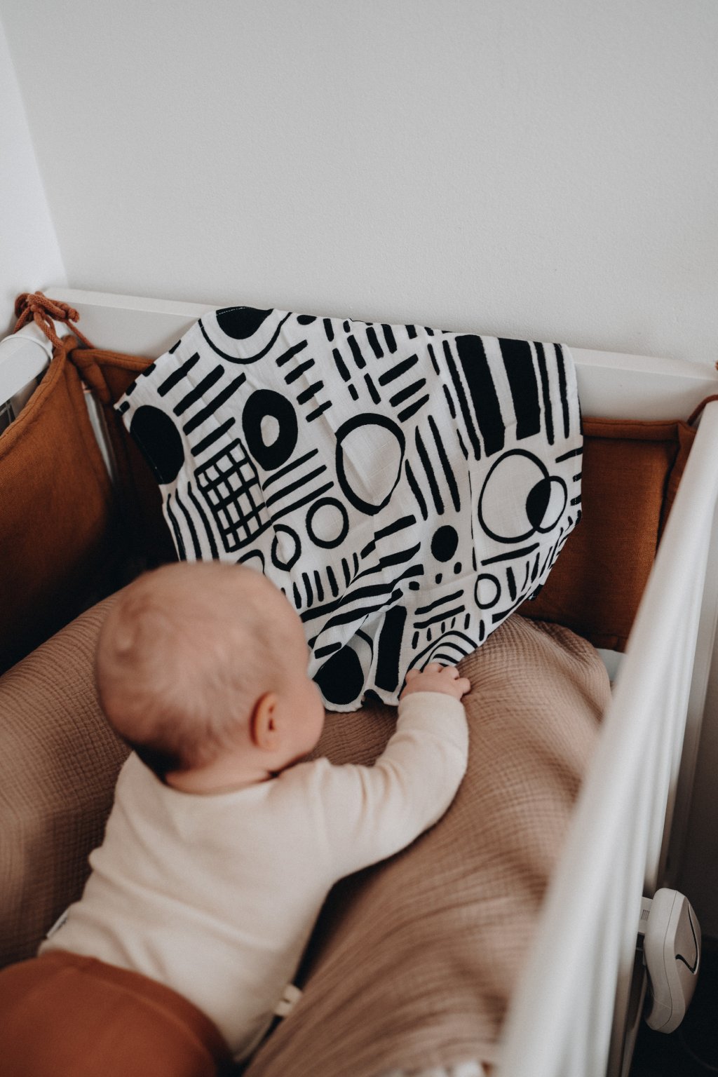 Na rozdiel od kontrastných kariet či hračiek, ktoré často ležia bokom, kontrastná mušelínka sa prirodzene stáva súčasťou každého dňa. Je ľahká, skladná, vždy po ruke – a navyše krásna.