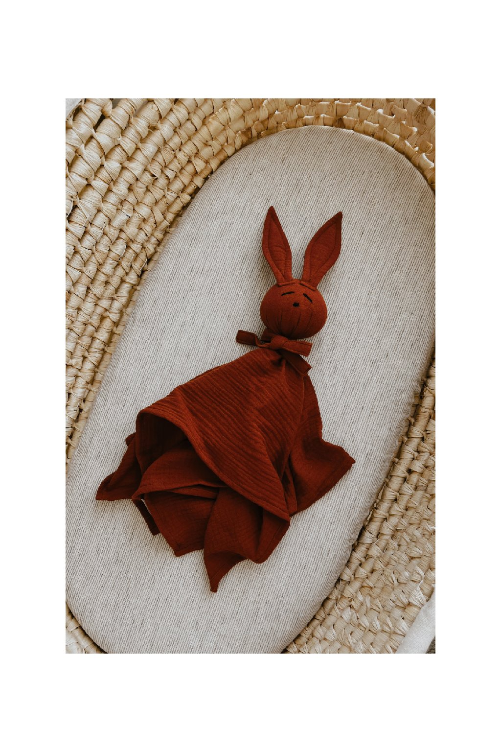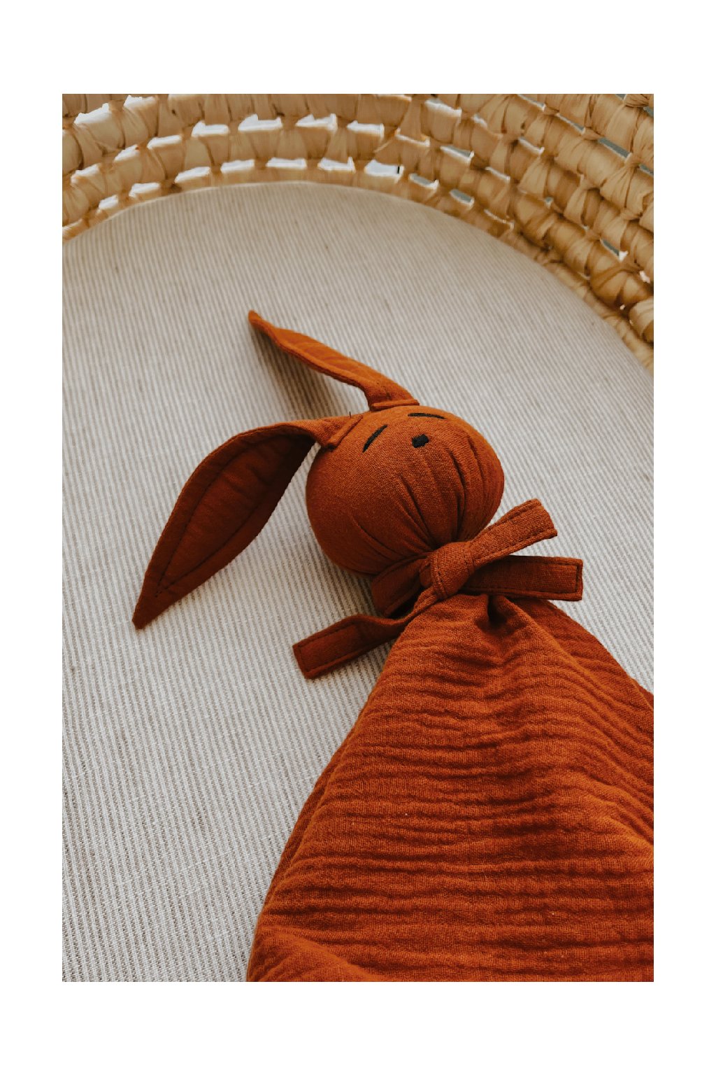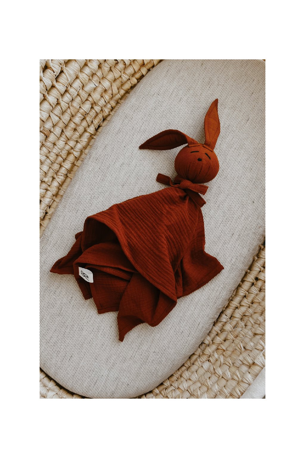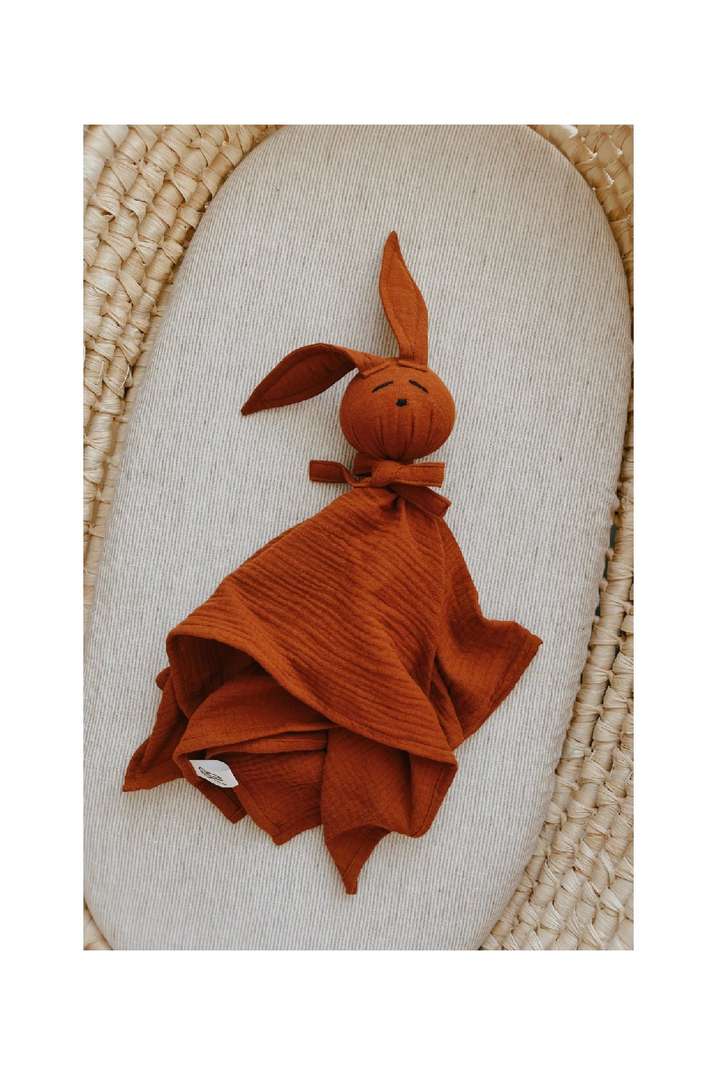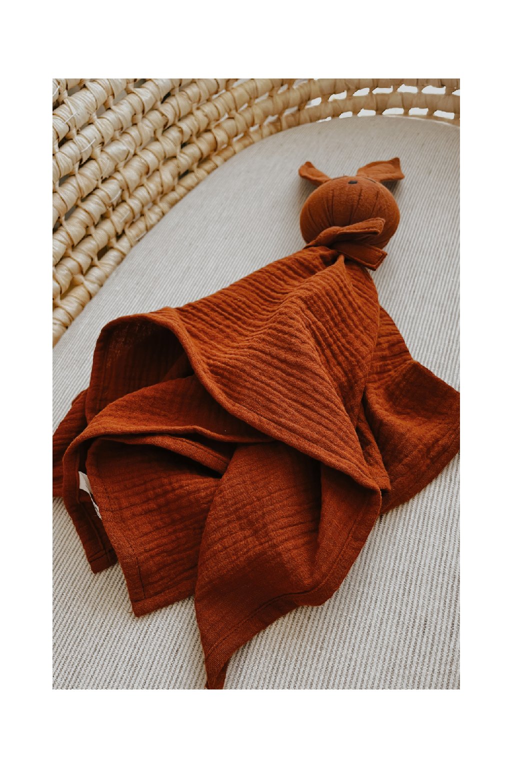 Jemná mojkacia hračka z prírodného bavlneného mušelínu, ktorú si bábätká zamilujú už od prvého dotyku.